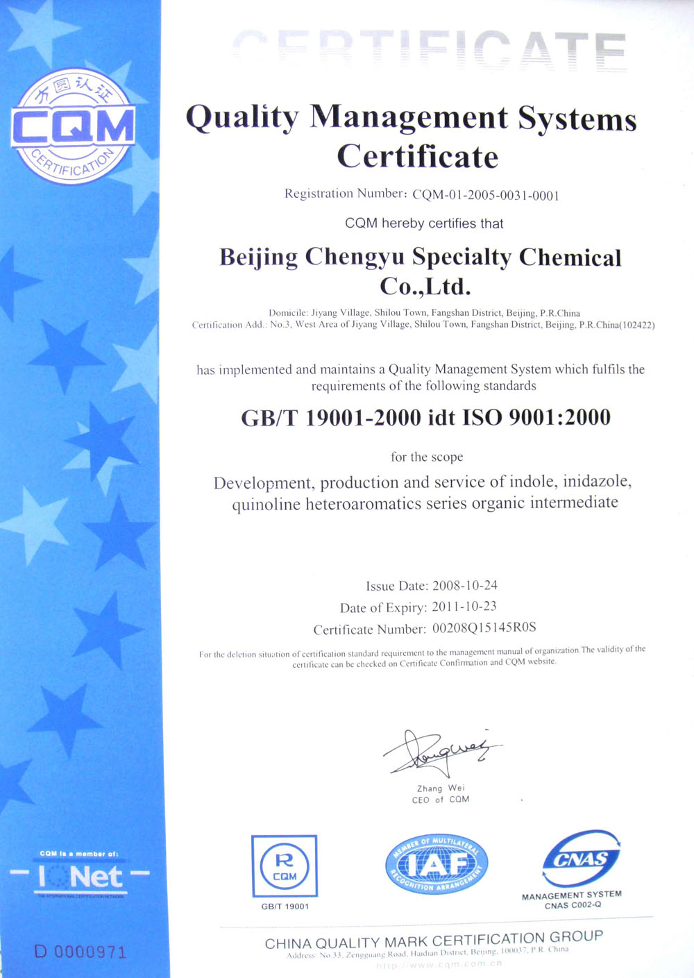 Chengyu has gained the quality certification of ISO9001-2000; the environmental management of ISO14001-2004; the occupational healthy security management of OHSAS18001-1999 and "Beijing High-tech Enterprise Certificate".