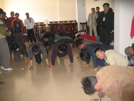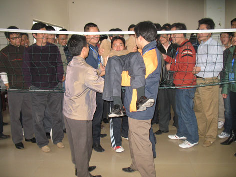很简单的一个游戏,但是也是需要全体队员的协同。其实这是输的一方在受罚,罚过之后带给我们什么反思呢?很值得大家去考虑。。。。