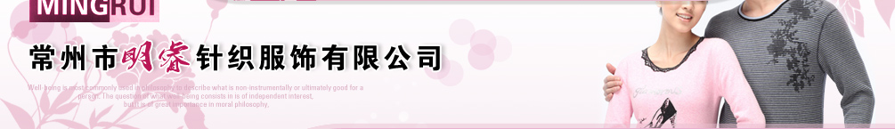常州市明睿针织服饰有限公司位于龙城常州,人文优越,交通便捷。公司前身明睿针织厂创办于2000年,主要从事外贸订单针织面料的配套加工服务。2004年成立明睿针织服饰有限公司,生产各类单双面组织针织面料,主营保暖系列面料,包括不倒绒,珊瑚绒,热力绒,棉涤豹纹印花,豹纹高弹,棉高弹,莫代尔氨纶毛圈拉绒,腈纶天丝绒布,考拉荣,七彩绒,腈棉绒,磨毛等系列产品。常规针织面料包括汗布,氨纶汗布,单,双珠地网眼,大,小循环彩条,棉毛,华夫格,法式罗纹,1*1,2*2罗纹,毛圈布,氨纶毛圈,空气层等。 公司现拥有全进口单双面圆织机20台,全进口电脑绣花42台,并配备全套后整理染整设备。我们一如既往的坚持良好的品质,良好的服务,良好的信誉。我们会努力把产品做好。