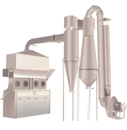 它是由空气过滤器、沸腾床主机、旋风分离器、布袋除尘器、高压离心通风机、操作台组成。由于干燥物料的性质不同,配套除尘设备时,可按需要而进行,可同时选择旋风分离器、布袋除尘器,也可选择其中的一种。一般来说,比重较大的物料只需选择旋风分离器;比重较轻的物料需配套布袋除尘器,并备有气力送料装置供选择。