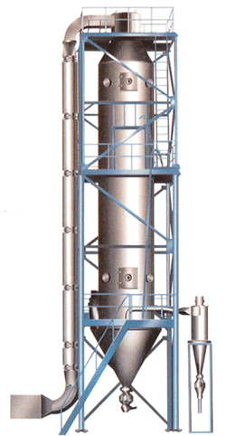 喷本机是将料液压入位于塔体顶部的喷嘴雾化成微小雾滴,同塔顶热风平等而下完成干燥。该机具有收尘率高,无粘壁、节能高效等特点,特别适用于热敏性物料干燥。广泛应用于食品、染料、中间体等行业。 |