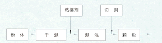 医药、食品、化工等领域的粉体注入粘合剂混合并制成颗粒。