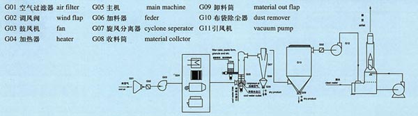 4.Because gas speed at circle inside the drying chamber is high and the staying time of raw material is short, high efficiency and quick speed can be realized. It is possible for small equipment to carry out large-scale production;
