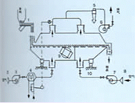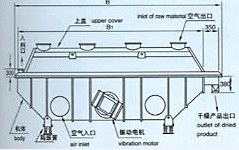 ◆Raw material is fed into the machine the inlet and moves forward continuously along with the level of fluidized-bed. bed under the action of vibration. The hot air passes throgh fluidized-bed and carries out heat exchange with damp raw material. Then the damp air is exchange with damp raw material. Then the damp air is exhausted out throungh cyclone separator and duster and the dry raw material is discharged through discharge outlet.