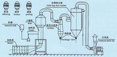 ◆Typical materials to be dried: iron oxide red, iron oxide black, yeast powder, kieselgur, titanium pigment, starch, calcium carbonate, sodium nitrite, humic