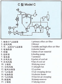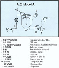 5 、在大型生产机上,在雾化器与热风分配器之间采用一次冷风技术。防止物料返顶及冷却雾化器;