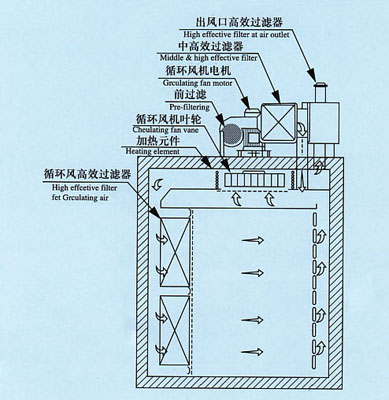 ◆Internal heated air is flat—flowing to ensure hot air in effective space to be at Class 100 cleanness.