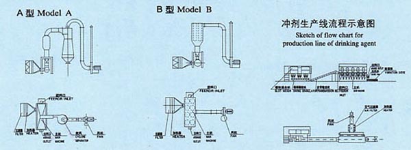 ◆Boiling drier is also called as fluidized-bed. It consists of air fiter, heater, fluidized-bed main machine, feedder, cyclone separator, cloth bag duster, high-pressure centrifuge fan and operation table. Because the properties of raw materials exist difference, when equip the dust removing equipment, it should conside thepractical nee. .It can select cyclone separator and cloth bag duster at the same time or one of them. In general speaking, it needs to select cyclone separator only for raw material that is large in specific gravity and cloth bagduster for powder and small granule raw materials that is light in specific gravity. Meanwhile there is air feeding device and belt conveyor for selection.