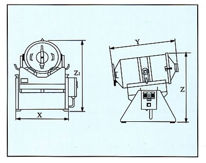 EYH Series Two Dimensions Mixer Principle Two dimensioal mixer mainly consists of three big parts. manely,rotating cylinder,swinging rack and frame. The rotating cylinder lies on the swinging rack,supported by four wheels and its axial fixation is done by two stop wheels Two of four wheels are driven by rotating power system to make the cylinder rotate. The swingingrack is driven by a set of crandshaft swinging bar which is mounted on the frame and the swinging rack is supported on the frame.