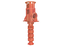 GLDC立式混流液下泵为立式单级、转子可抽式或泵整体可抽式混流泵。可以在泵壳体不拆卸的情况下,将泵的可抽部分抽出进行检修,电机与泵直联安装,泵的吸入口垂直向下,吐出口为水平方向,可在基础之上或之下,从电机向下看为顺时针方向旋转,泵的轴向力由轴承座或电机推力轴承承受。叶轮分为整体式和组合式,以适应不同的工况要求。泵的导轴承由耐磨橡胶和进口导轴承(高耐磨、高耐腐、耐海水聚胺脂)组成,能实现无润滑、无冷却水运行。泵的填料可由石棉填料或浸清填料密封。