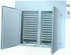 热风循环烘箱是属盘架式间歇干燥、通用性较大的干燥设备,适用于制药、化工、食品、轻工、电子等行业的物料、成品的除湿、固化乃至灭菌的单元操作。如:原料药、生药、中药饮片、粉剂、颗粒、冲剂、蜜丸、颜料、染料、香料、包装瓶、脱水蔬菜、食品、塑料树脂、电器原件、烘漆等等。 |
