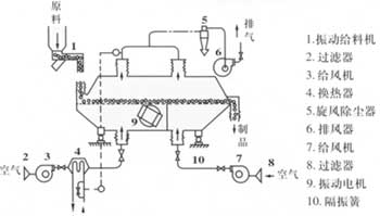 振动源是采用振动电机驱动,运转平稳,维修方便,噪音低、寿命长。 流态化匀称,无死空隙和吹穿现象,可以获得均匀的干燥、冷却制品。 可调性好,适应面宽。料层厚度和在机内移动速度以及全振幅变更均可实现无级调节。 对物料表面的损伤小,可用于易碎物料的干燥;物料颗粒不规则时亦不影响工作效果。 采用全封闭式的结构,有效地防止了物料与空气间交叉感染,作业环境清洁。