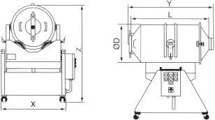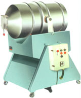 本机混合筒在转动的同时又参与摆动,使筒中物料得以充分混合。混合筒的出料口偏离混合筒园筒部分的中心线,使该机具有混合迅速、混合量大、出料便捷等特点。