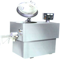 | 粉体物料与粘合剂在圆筒(锥形)形容器中由底部混合桨充分混合成湿润软材,然后由侧置的高速粉碎桨切割成均匀的湿颗粒。 |