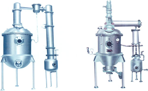 本设备主要包括浓缩罐、第一冷凝器、汽液分离器、第二冷凝器、冷却器、受液桶六个不锈钢部件组成,浓缩罐为夹套结构,冷凝器为列管式,冷却器为盘管式。适用于制药、食品、化工等行业部门对料液的浓缩。并且也能回收酒精和简单的回流提取。