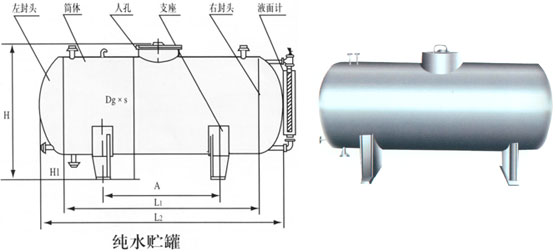 本公司生产的JN系列蒸馏水贮罐,设计合理,工艺先进,自动化控制程度高,符合国家GMP认证要求,罐体采用立式或卧式两种均为三层结构,内胆抛光Ra0.45,夹层内缠绕螺旋加热带,外覆保温材料,外表采用镜面板或磨砂板保温,罐体光泽一致。凡是与蒸馏水接触的部件均采用316L材质,其余为304材质。顶部开设进水口、回流口、消毒口、清洗口、入孔,空气呼吸器口(0.22mm)。底部设有出水口、排污口。备有控制柜操作,检测蒸馏水温度并显示温度自动控制。检测液位高度显示提供上、下限报警等功能。