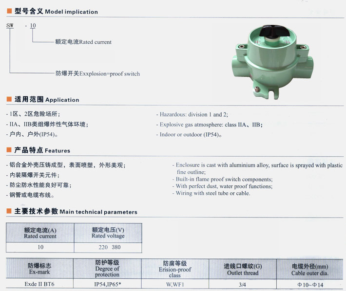 SW-10防爆照明开关(IIB)