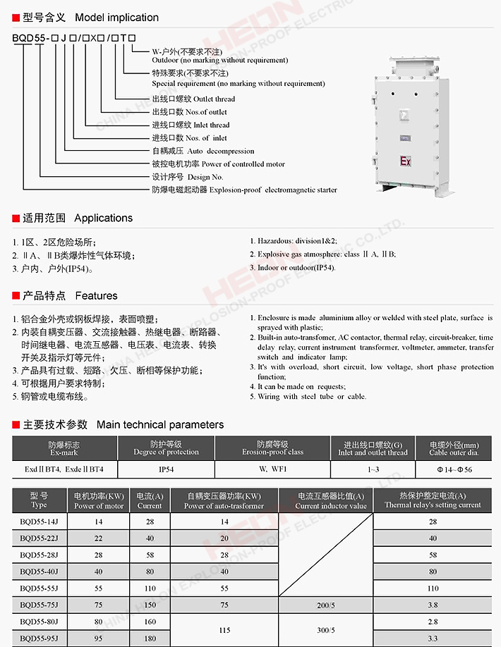 BQD55-□J系列防爆自耦减压起动器(ΠB)