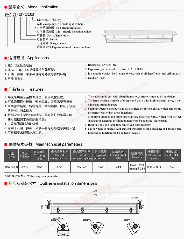 BAY53-J系列井架专用防爆荧光灯(应急)(ΠC)