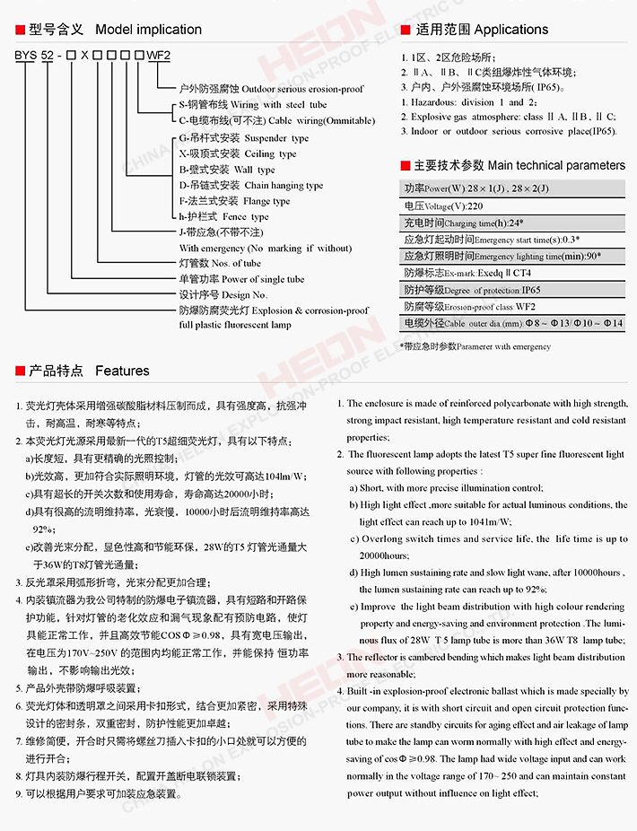 BYS52-J系列防爆防腐全塑荧光灯(T5灯管)(应急)(ΠC)