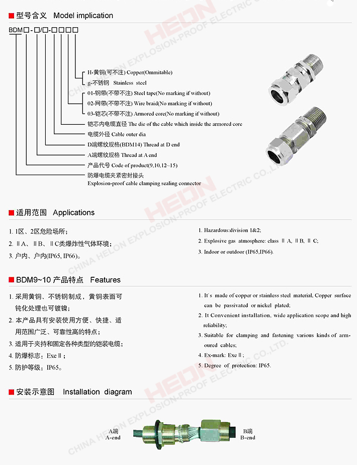 BDM□-系列防爆电缆夹紧密封接(铠装)(dΠ/e)