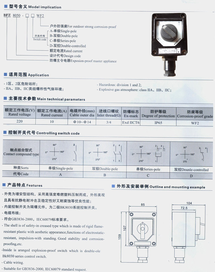 BFZ8050-防爆防腐照明开关(IIC)