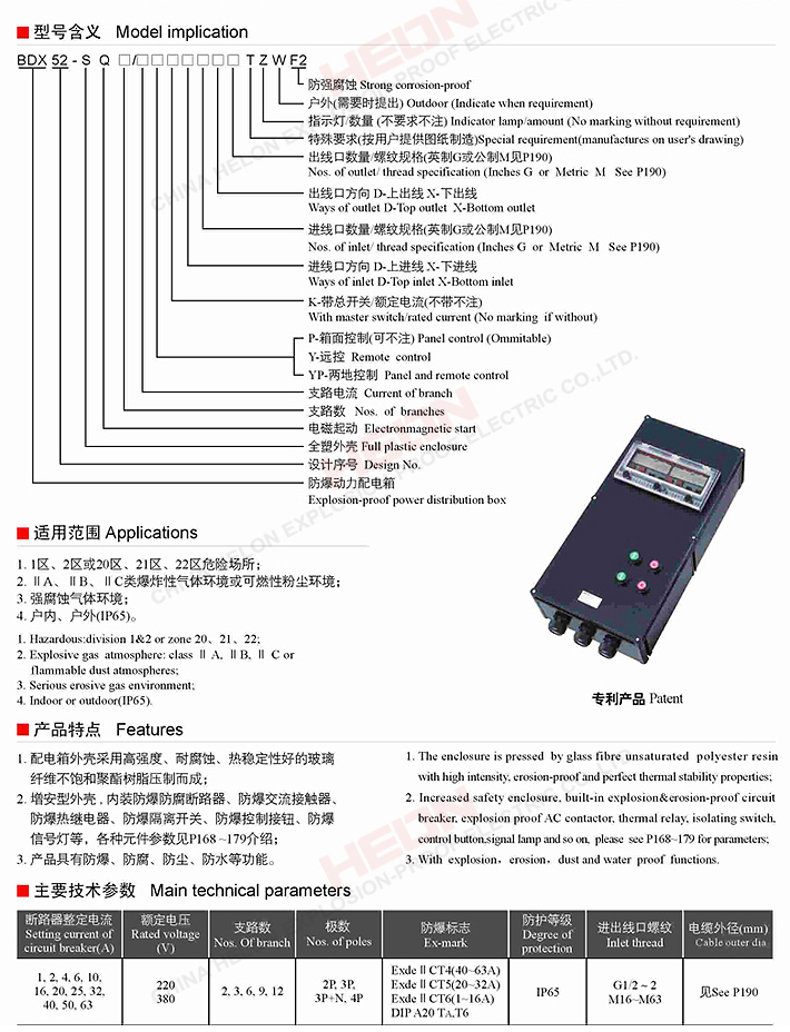 BDX52-SQ系列防爆动力配电箱(电磁起动)(全塑外壳)(ΠC)