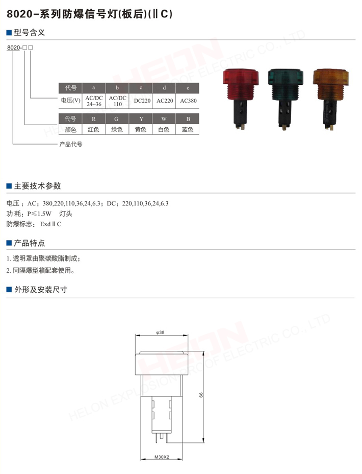 8020防爆信号灯板后型