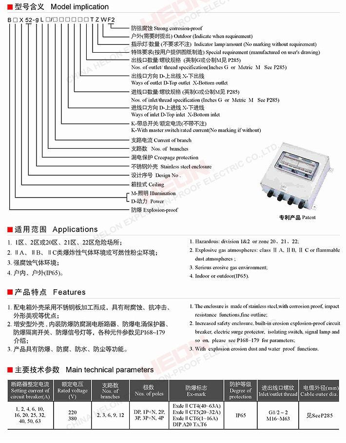 B(M/D)X52-gL系列防爆照明(动力)配电箱(漏电保护)(不锈钢外壳)(ΠC)