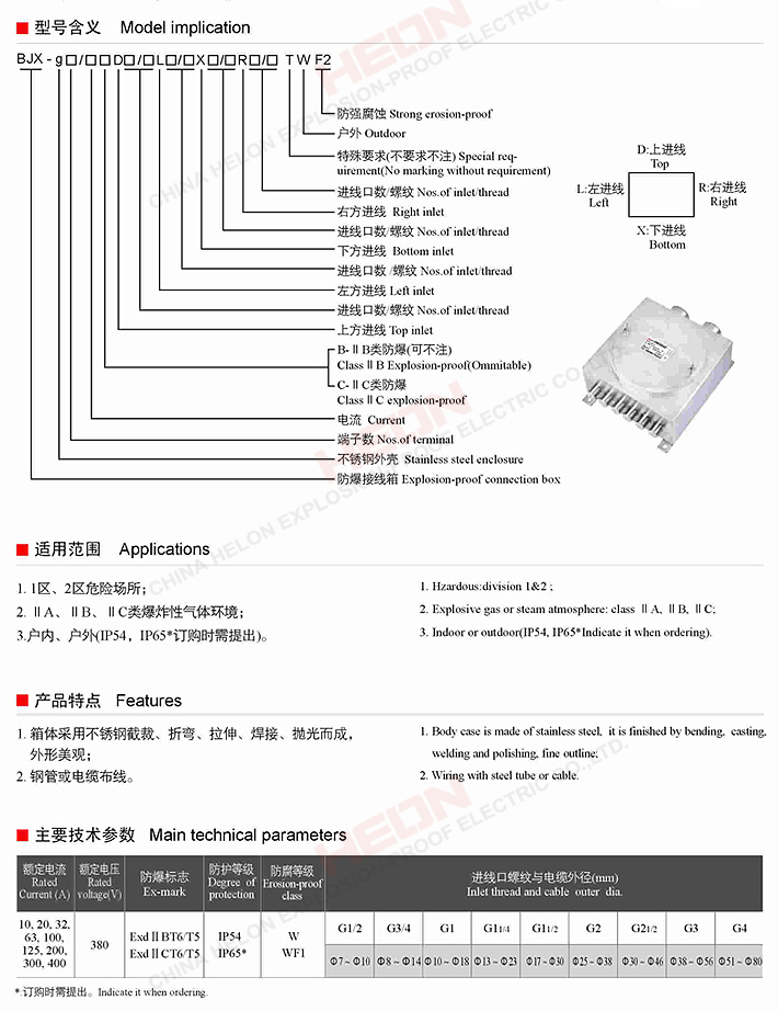 BJX-g系列防爆接线箱(不锈钢外壳)(ΠB/ΠC)