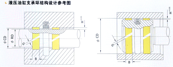 液压油缸活塞与活塞杆支承环参考规格 单位(mm)