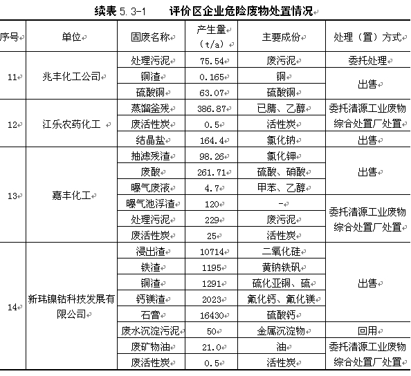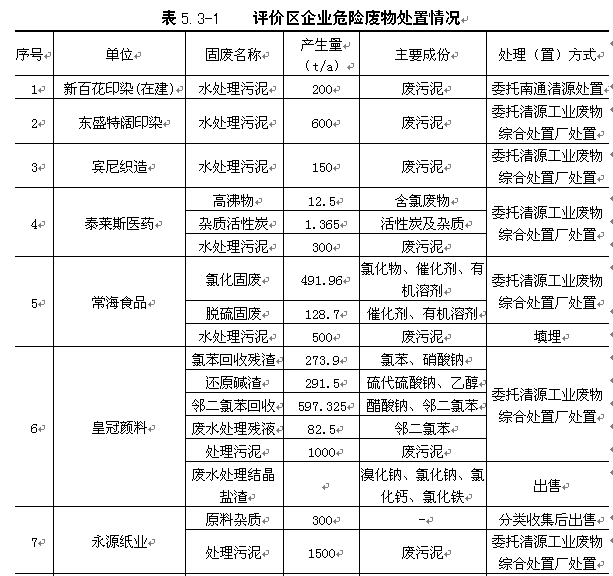 | 评价区域内各企业危险固废的产生及处置情况建表5.3-1。 |