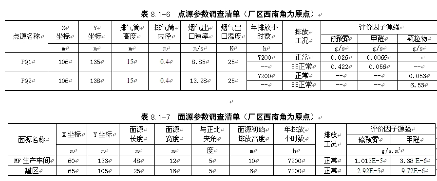 | 根据拟建项目废气排放特点,环境空气预测因子为硫酸雾、甲醛和颗粒物。 |