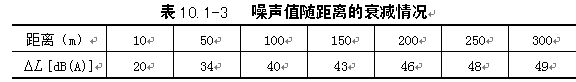 | 由上式可计算出噪声值随距离衰减情况(表10.1-3)。 |