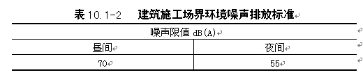 | 施工噪声对周边声环境的影响,采用《建筑施工场界环境噪声排放标准》(GB12523-2011)(表10.1-2)进行评价。 |
