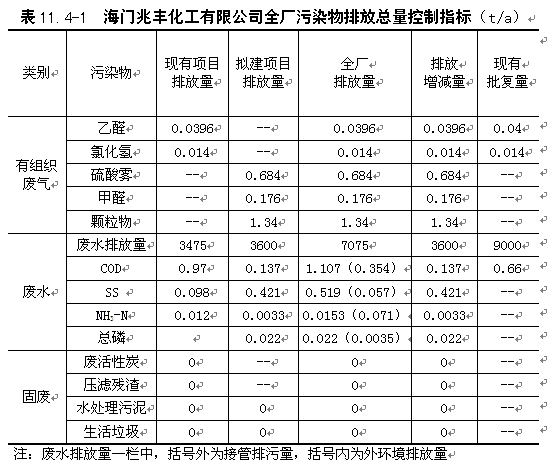 | 拟建项目污染物甲醛、硫酸雾、颗粒物由海门市环保局核定后给予总量,并报南通市环保局批准。 |