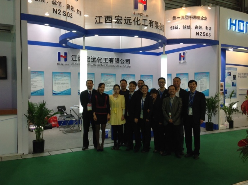 The Plastic and Rubber Industry Exhibition, the first in Asia and the second in world, was held in Shanghai’s new international exhibition center from April 23th to 26th. More than 3000 exhibitors from 38 countries and regions took part in this event. Under the leadership of our general manager Wu LuLiang, about 20 Hongyuan staff engaged in technology and sales with a number of high-tech achievements developed by ourselves in recent years took part in this event. In this exhibition, the company’s participating team had a lot of harvest. Firstly, we met a lot of old and new customers. We received the largest number of merchants to consult and negotiate businesses in this exhibition. Secondly, we broadcasted our products excellently. Because our samples ( polyethelene wax, oxided pe wax, hydrotalcte, Ca/Zn stabilizer, calcium stearate, zinc stearate, barium stearate, coupling agent, GMS, PVC compound stabilizer etc.) has high quality and good intuition and also our technician give a clear explanation, so we attracted a large number of merchants and audiences to consult in the booth. Thirdly, we got a lot of information about peers and the market and customer requirements.