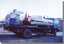 该设备采用东风EQ1141G型底盘车,台上作业机采用兰州兰通机械厂科研所研制的LTK20型卧式三缸柱塞输液泵,最大排液量可达20立方米/小时,出口温度120℃,该设备具有较强的野外施工作业能力,可广泛用于各油田油井、管线的清蜡、解堵工作。